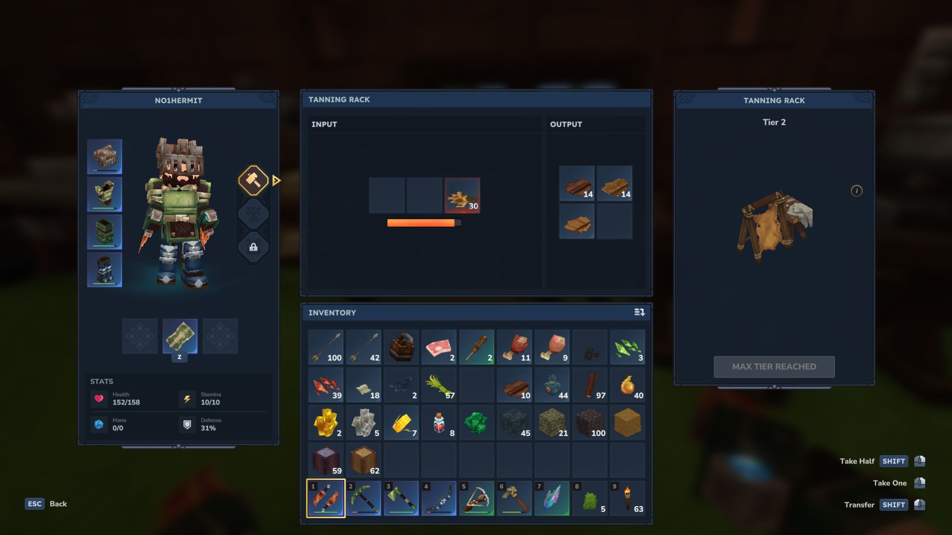 В дополнение к этому, вы можете улучшить Tanning Rack до 2-го уровня, используя следующие материалы: