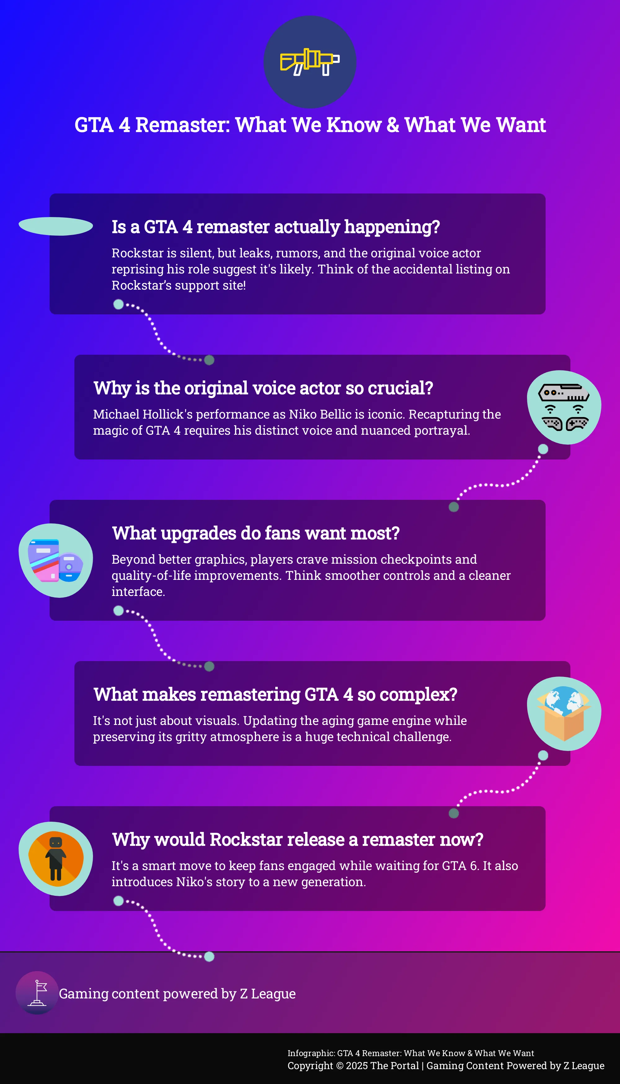 Как преданный поклонник, если бы компания Rockstar Games решила воскресить историю Нико Беллика, это потребовало бы больше, чем просто обновить внешний вид Либерти-Сити. Сообщество громко выразило свое мнение о том, что должна воплощать современная версия GTA 4: тонкий баланс между сохранением сырой аутентичности оригинала и включением современных элементов, которых игроки ожидают.