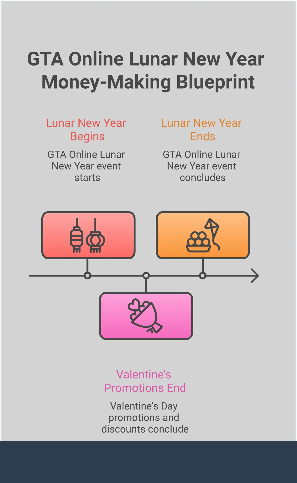 Rockstar встречает Лунный Новый год ярким празднованием в Лос-Сантосе, и это прекрасное время, чтобы заработать много денег! Если вы ищете перемен и возможность увеличить свой доход, это событие для вас. Вы можете получить тройные награды за трюковые гонки, получать гораздо больше за задания телохранителя и участвовать в городском квесте с ценным призом. Неважно, как вы играете – в одиночку или с друзьями – это ваша возможность пополнить свой банковский счет. Это руководство подробно расскажет обо всех бонусах, чтобы вы могли максимизировать свои доходы во время празднеств.