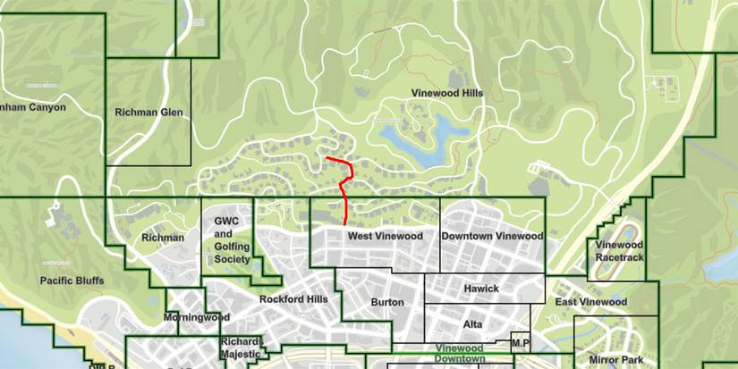 Если вы хотите найти Dubsta 2, вам потребуется проявить терпение и поискать его на определенной улице недалеко от Vinewood Hills, как показано на карте выше. Он становится доступен в игре только между 8:00 и 12:00 (полночью).