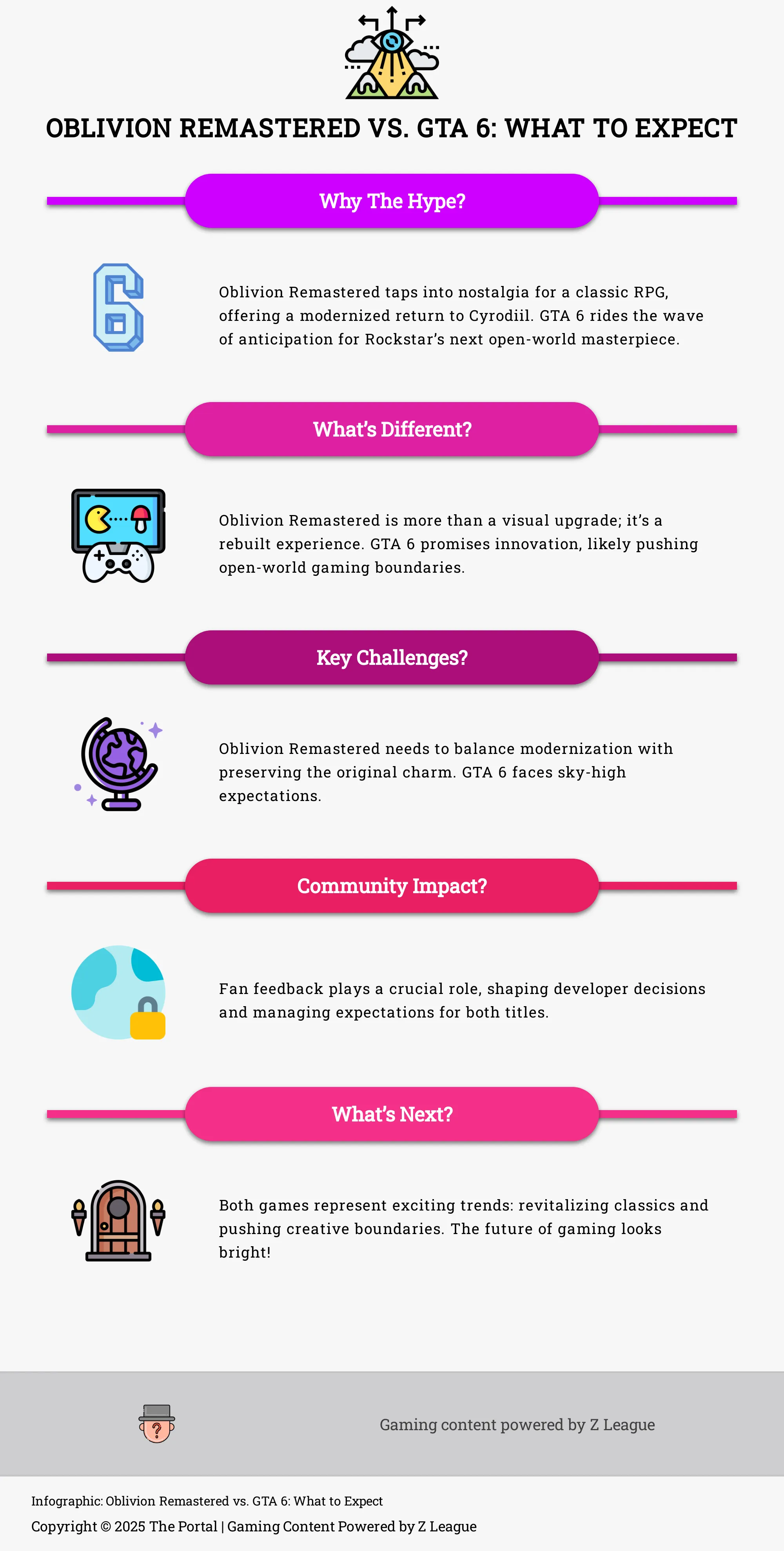 - Ностальгия против ожидания: ‘Oblivion Remastered’ полагается на любовь к классической ролевой игре, в то время как ‘GTA 6’ использует волну интереса к следующему приключению от Rockstar в открытом мире. Оба примера демонстрируют силу участия сообщества в игровой индустрии.
