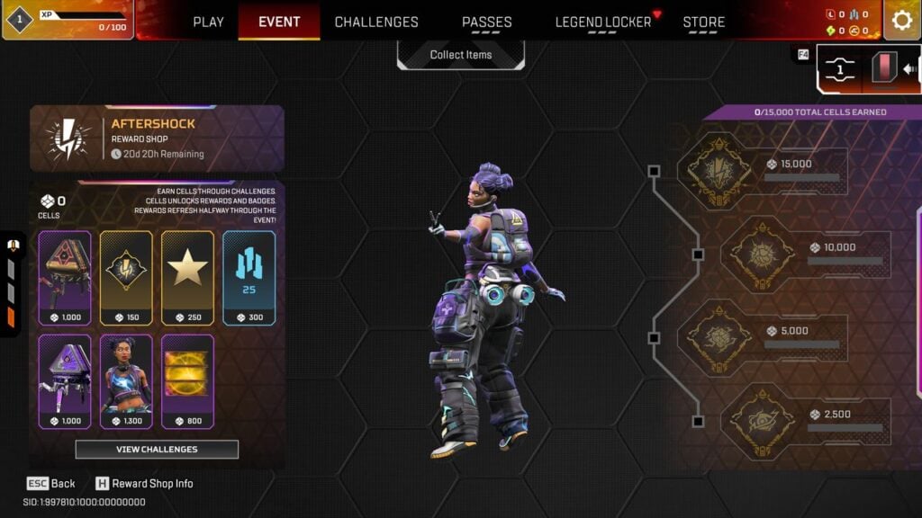 Событие Aftershock отличается стильной, мрачной тематикой с акцентами электрического синего цвета. Новые облики персонажей будут доступны для Ватсон, Эш, Патфайндер, Хорайзон, Крипто и Гибралтара. Игроки также смогут бесплатно получить облик для Lifeline в рамках события. Оружие EVA-8, Havoc и CAR также получит новые облики во время события.