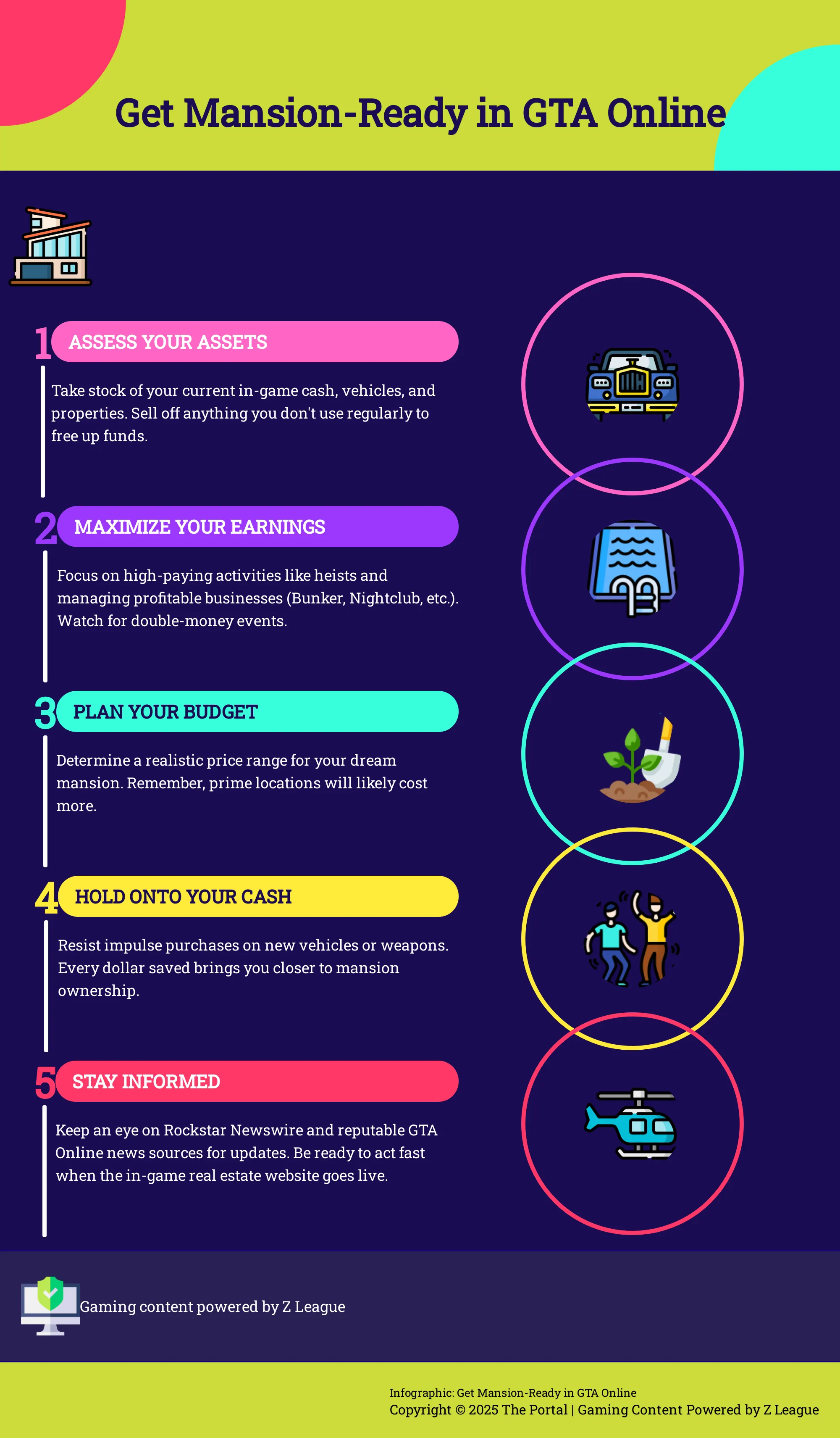 Это обновление требует продуманных финансовых шагов, а не просто экономии здесь и там – речь идет об умном планировании в сфере недвижимости. По слухам, новые особняки будут продаваться исключительно на специальном веб-сайте, отдельно от аукционов Maze Bank. Это говорит о том, что это могут быть объекты премиум-класса с соответствующими высокими ценами. Начните обдумывать свой бюджет заранее. Сколько вы можете позволить себе потратить на дом своей мечты? Оцените свои текущие активы. У вас есть транспортные средства в гаражах, которые редко используются, или недвижимость, за которой никто не присматривает? Возможно, пора продать некоторые неиспользуемые вещи, чтобы получить денежные средства для этой значительной инвестиции. Важно, чтобы ваши средства были легко доступны.