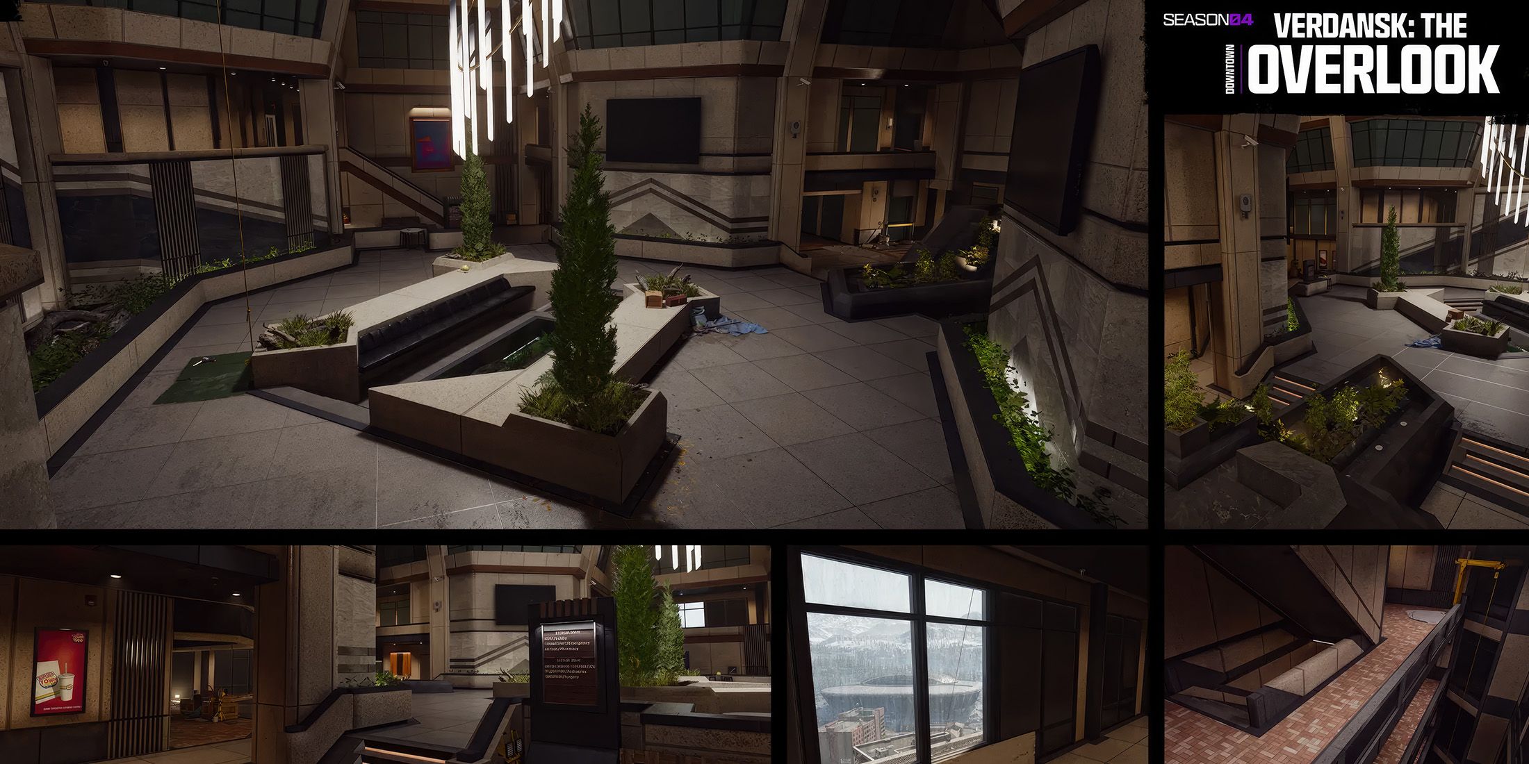 Одним из значительных изменений в Call of Duty: Warzone на карте Верданск стало добавление огромного и возвышающегося небоскреба под названием The Overlook. Этот объект превосходит все остальные здания по высоте, будучи более чем вдвое выше их. Он заменил некоторые существующие локации, такие как старые многоэтажные здания, Burger Town и SKN Comm tower, а также контролирует соседние районы включая почтамт, Rothwynn Donna и мэрию города. Игроки могут перемещаться между этажами, взбираться на краны, переходить с крыши на крышу по канатной дороге и исследовать новые области, например, перемещенный Burger Town и суши-бар на уровне улицы.