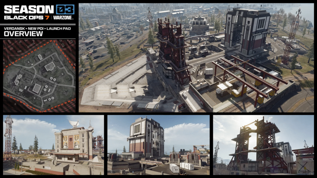 Верданск по-прежнему будет доступен для игры, но область Hills была удалена. На её месте вы найдете Launch Pad, также известный как стартовый комплекс Grazna-7. Это большая новая локация, предназначенная для того, чтобы стать популярным местом для приземления игроков как в основном режиме Battle Royale, так и во временном режиме Launch Squad.