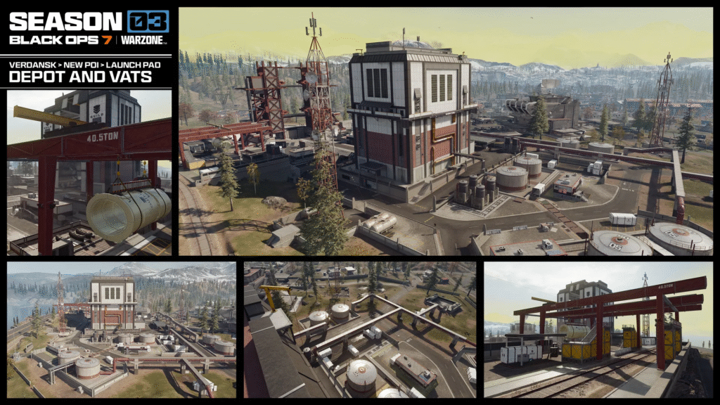 Депо и резервуары расположены по периметру карты. В Депо есть поезд, который предоставляет некоторые возвышенные позиции, полезные для перехвата перемещения противника. Между тем, ряды резервуаров и топливных баков предлагают низкое укрытие и возможности для перемещения по сторонам от Gantry, Hangar и главной дороги.