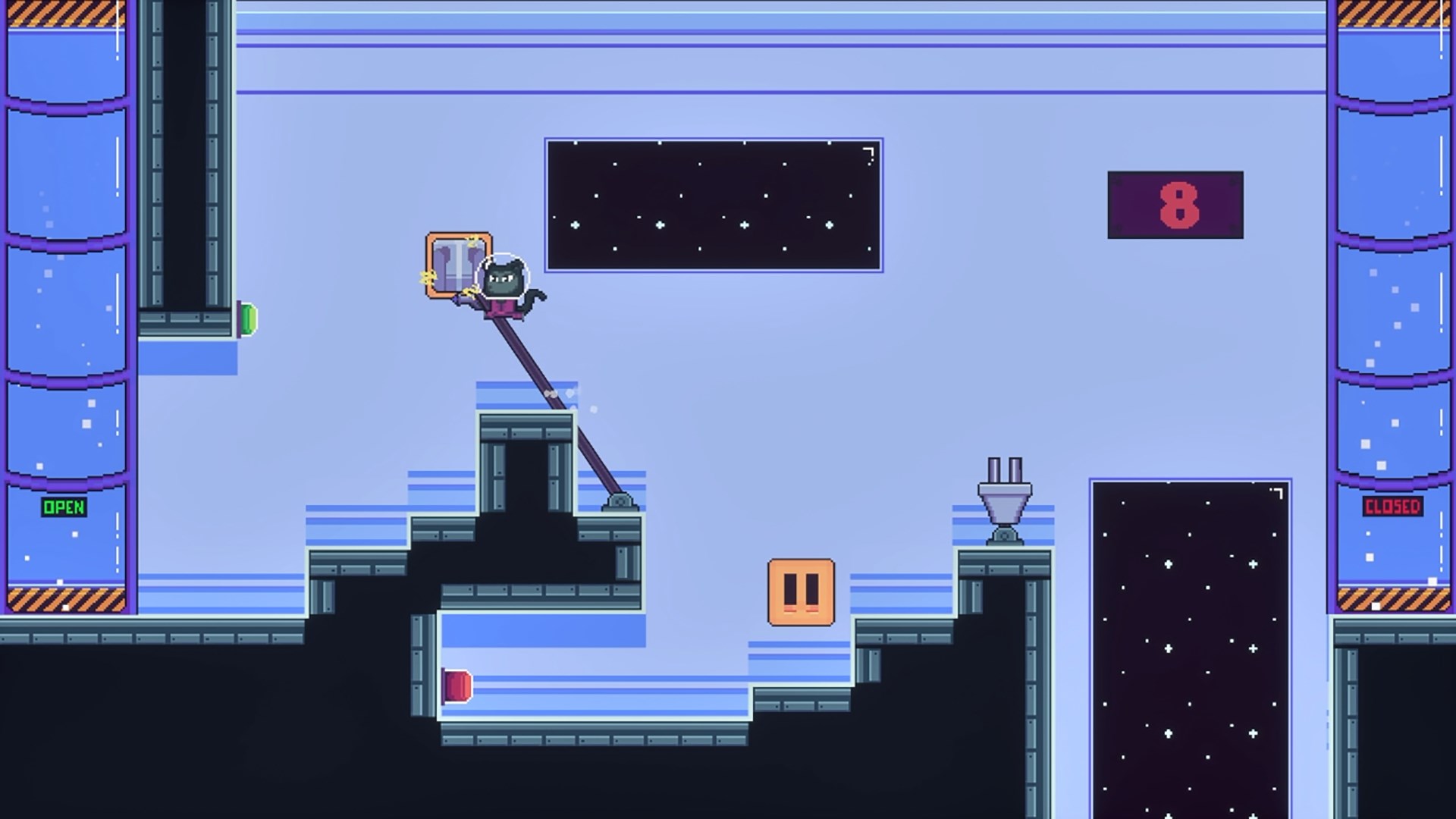 Space Kitten не имеет больших, открытых уровней. Вместо этого в ней представлены сфокусированные испытания, которые побуждают игроков внимательно следить за происходящим и учиться на практике.