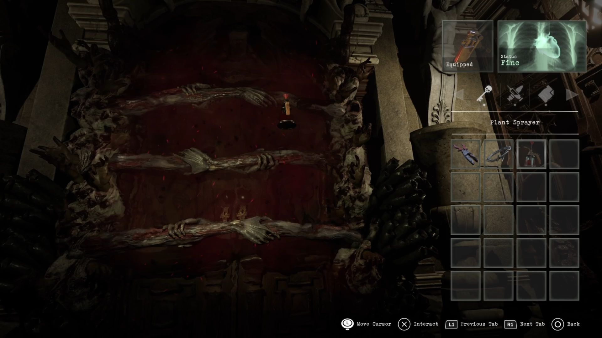 Окей, я взял опрыскиватель для растений и использовал его на чаше – она наполнилась кровью, что было немного жутко, но необходимо! Теперь я отправляюсь к проклятой двери в Монастыре, чтобы посмотреть, что будет дальше.