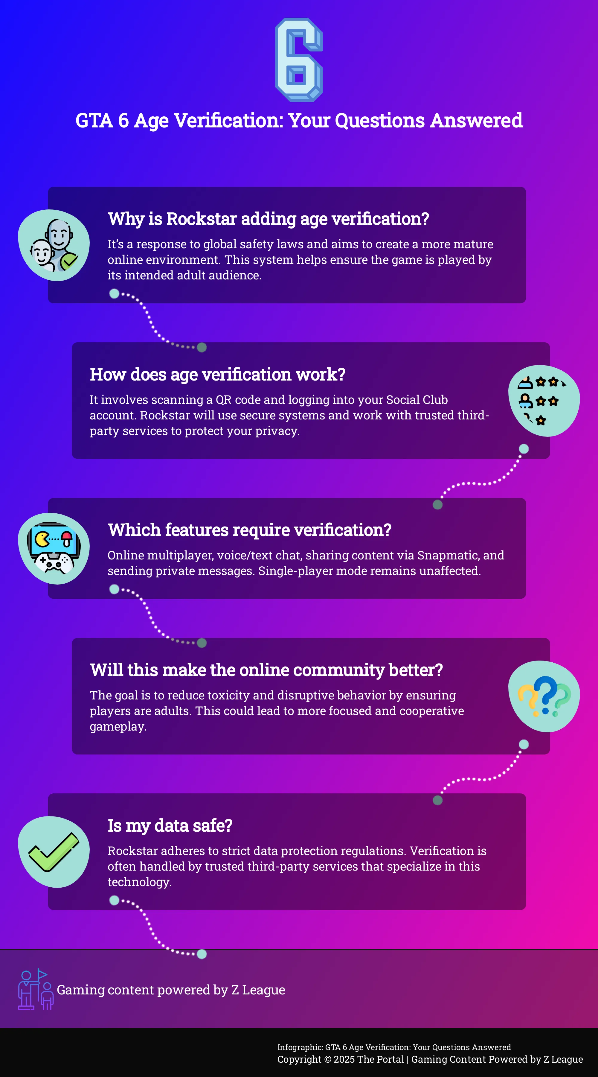- Процесс предназначен для того, чтобы быть простым и безопасным: проверка, скорее всего, будет включать сканирование QR -кода и регистрация в вашей учетной записи социального клуба. Чтобы защитить вашу конфиденциальность, ожидается, что Rockstar будет использовать безопасные системы и работать с доверенными сторонними услугами, что означает, что им не нужно хранить ваш личный идентификатор.